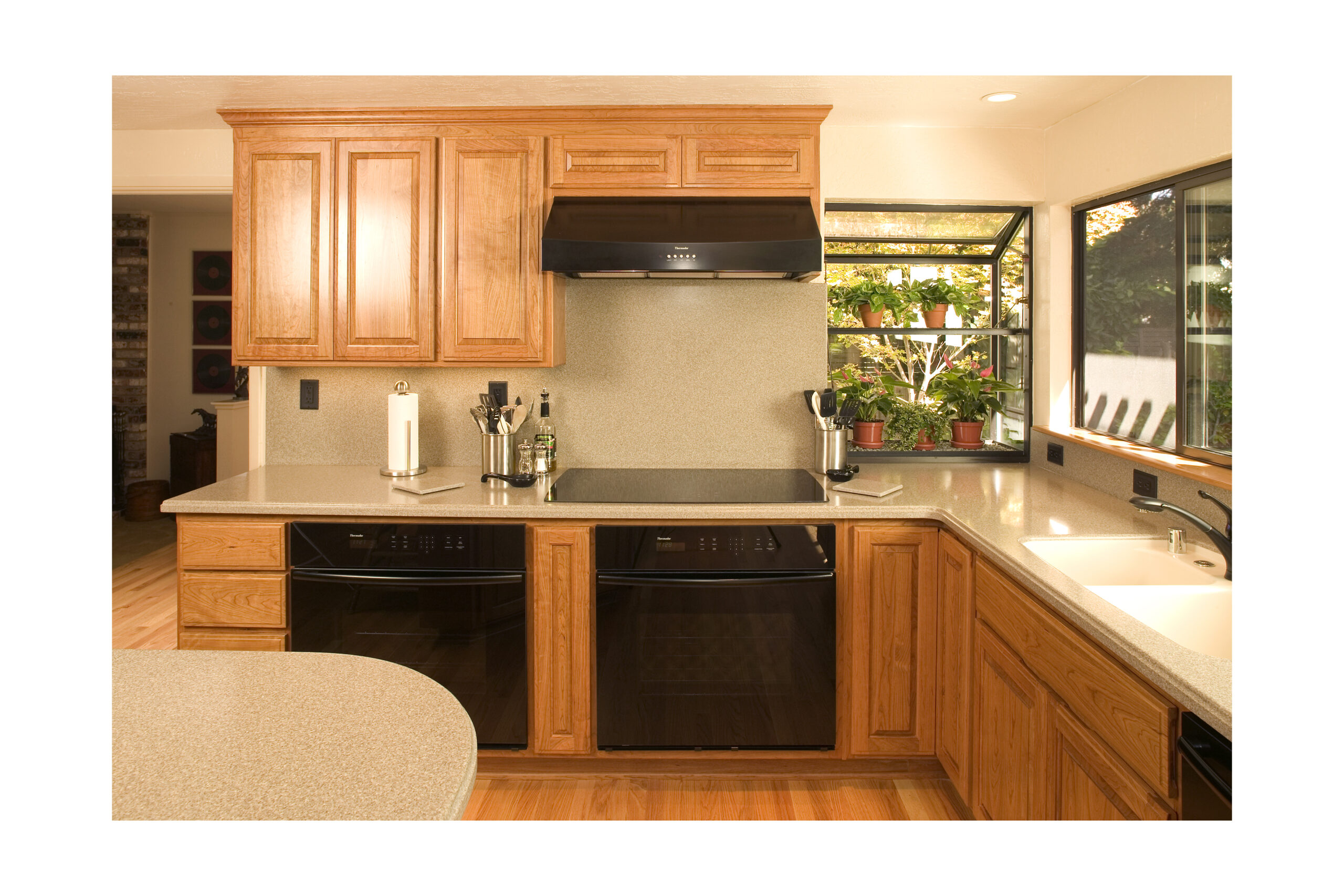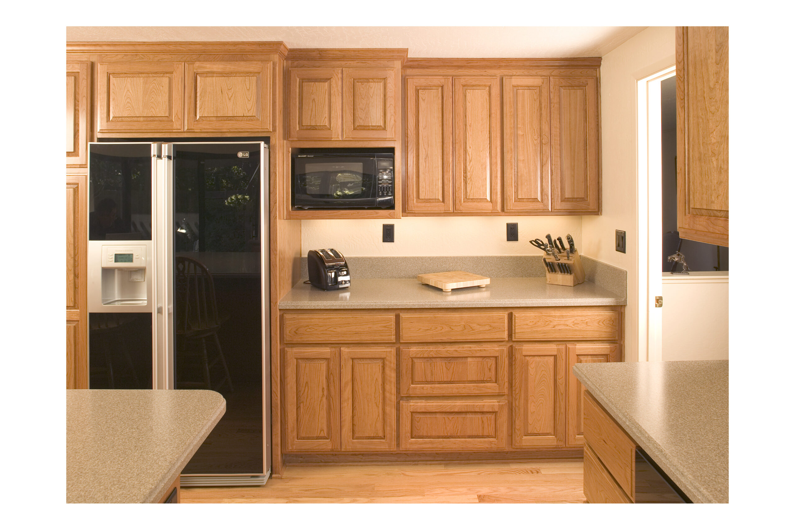 Picture 5: Cherry wood cabinets and Corian counter tops brighten this Sunnyvale kitchen.